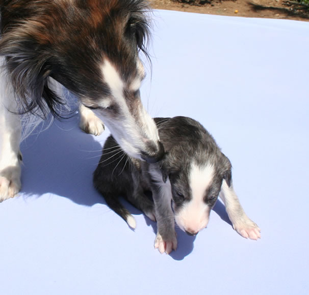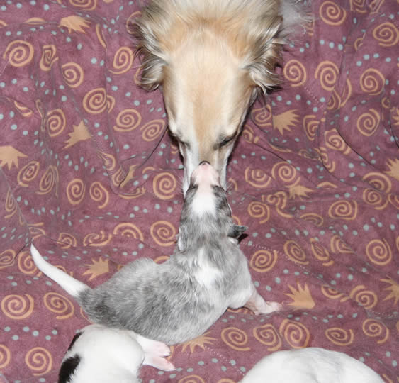 Superhero puppies at three weeks old are starting to play! Pigment is continuing to fill in and eyes are fully open and taking in everything. The babies are developing and getting stronger all the time. They enjoy climbing, crawling, along with very cute baby versions of walking and trotting. They seem to love spending time with their 'doggy' family, and Isis, Tuscan and Strider have all done their best to 'nurse' the babies, with extremely limited results at least as far as feeding is concerned. :)