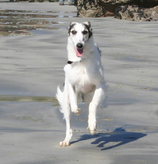 We co-own Violet with Faith and Bruce Hopperstad of Delta Windhounds in Lodi, CA. Violet is a sweet, lovely girl who loves everyone and giggles through life like her mommy Kyra. Violet was the first of the Silkens we bred to earn her conformation championship. Violet is 'poetry in motion' when she runs and loves to chase a lure. |