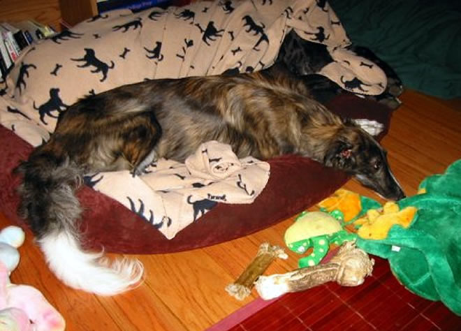 Isis lives here with us at Elessar Hounds. She is silly, sweet, elegant and goofy, and she loves to snuggle and run. Find out more about Isis. |