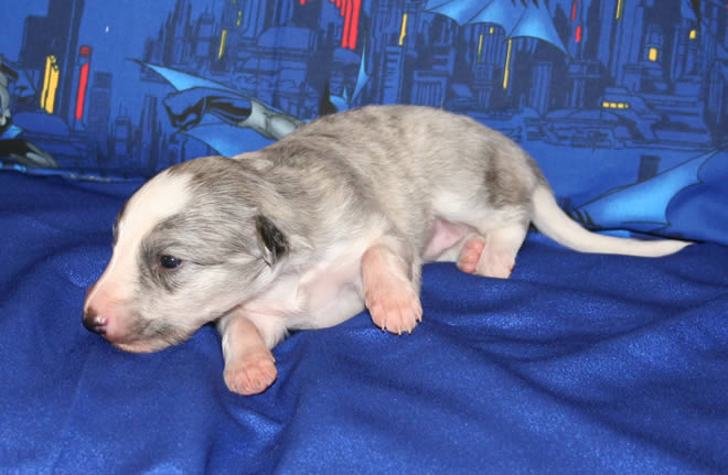 At two weeks old, the babies eyes are starting to open so they can see the world. It is amazing how fast they are growing and how expressive they are at this young age! They are starting to develop pigment and colors are becoming more identifiable. While it is a little early yet, all of the puppies seem to recognize family members and want to explore.