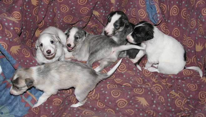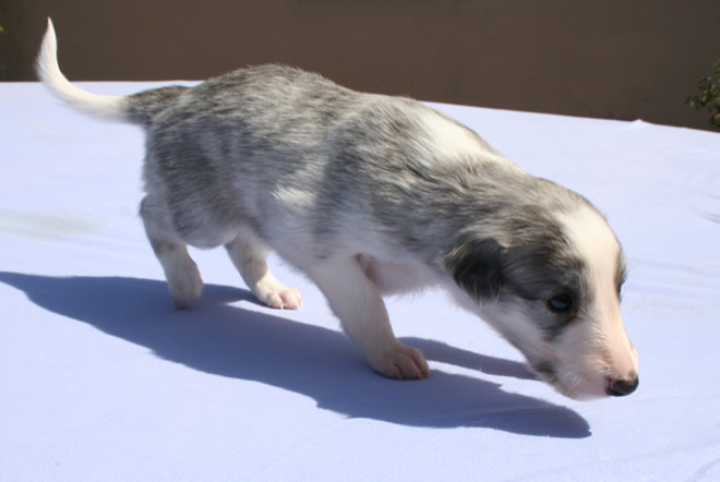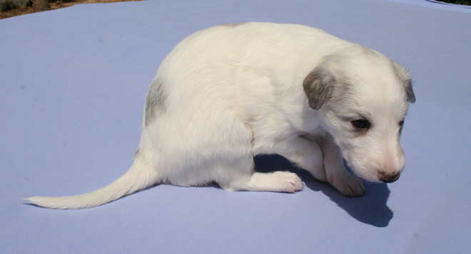 Superhero puppies at three weeks old are starting to play! Pigment is continuing to fill in and eyes are fully open and taking in everything. The babies are developing and getting stronger all the time. They enjoy climbing, crawling, along with very cute baby versions of walking and trotting. They seem to love spending time with their 'doggy' family, and Isis, Tuscan and Strider have all done their best to 'nurse' the babies, with extremely limited results at least as far as feeding is concerned. :)