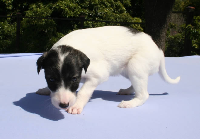 Most of the pictures this week were taken during the superheroes first adventure into the great outdoors. Colors are in some pictures a little bright in the sunshine on a light colored background, but possibly truer colors than the darker 'indoor' versions from previous weeks. The biggest problem I had this week taking pictures was that each puppy would start 'running' toward me when I put them down! They are so sweet and love people.